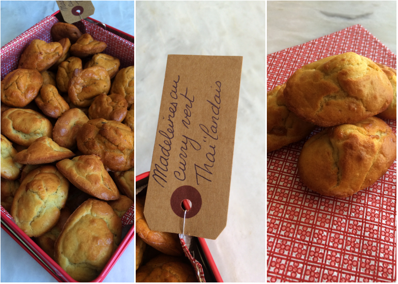 Voici la recette des mini-madeleines au curry vert thaïlandais et aux tomates confites & piment d’Espelette