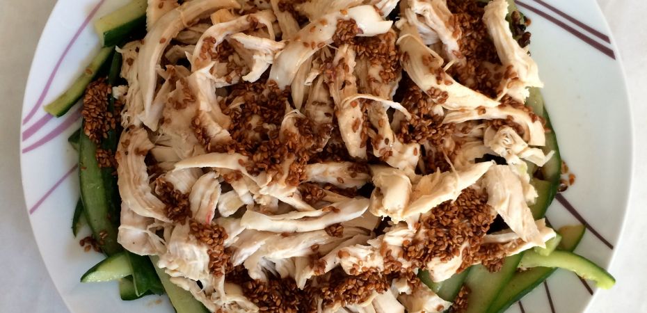 Voici la recette de cette jolie salade fraîche de poulet et concombre à la sauce sésame