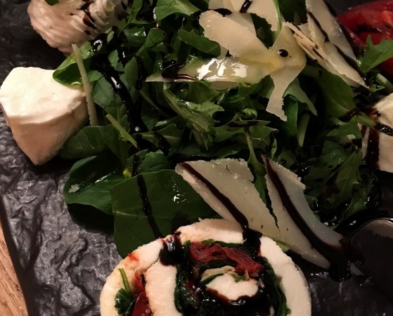 On peut aussi déguster des fromages provenant directement d’Italie comme de la ricotta fraîche, de la mozzarella fraîche, nouée, fumée, de la stracciatella di bufala, de la mozzarella farcie, et du parmesan. Avec une petite salade de roquette et du vinaigre balsamique, c’est un régal.