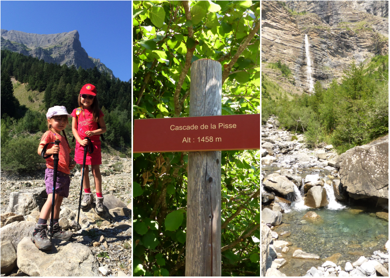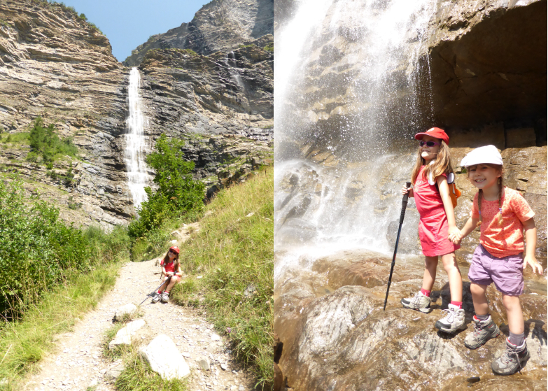 C’est une petite randonnée assez technique qui grimpe mais qui est assez courte en distance donc abordable pour beaucoup de petits acrobates comme ma chouquette qui avait seulement 3 ans 1/2 lorsqu’elle l’a parcouru pour la première fois. Elle qui n’aime pas le plat s’est beaucoup amusé. La balade commence au parking et longe le torrent. En arrivant sur un deuxième parking (plus petit qui permet à ceux qui veulent moins marcher de se garer au plus près) on peut déjà voir la cascade qui domine la vallée.