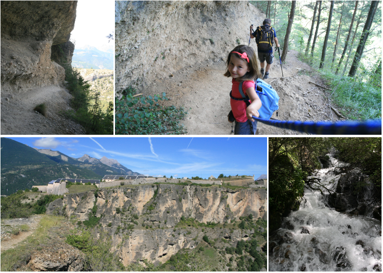 Le plateau de Guillestre offre un fabuleux point du vue. On apprécie les gorges du Guil et la jolie cascade. Avec les enfants, il faut être particulièrement vigilant sur le sentier en corniche à l’aplomb des gorges du Guil. Nous avons encordé notre puce pour être rassurer tout le monde. Il faut aussi faire attention aux possible chutes de pierres lorsque l’on passe sous les falaises de pouding. Pour notre puce qui avait déjà 6 ans pas de soucis mais nous avons préféré laisser la plus petite avec sa mamie !