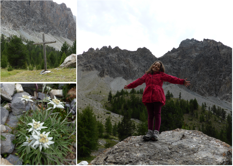 Avec les enfant, nous avons terminé notre ascension au promontoire de la vierge. La vue d’ici est magifique et des bouquets d’edelweiss ornent le sol.