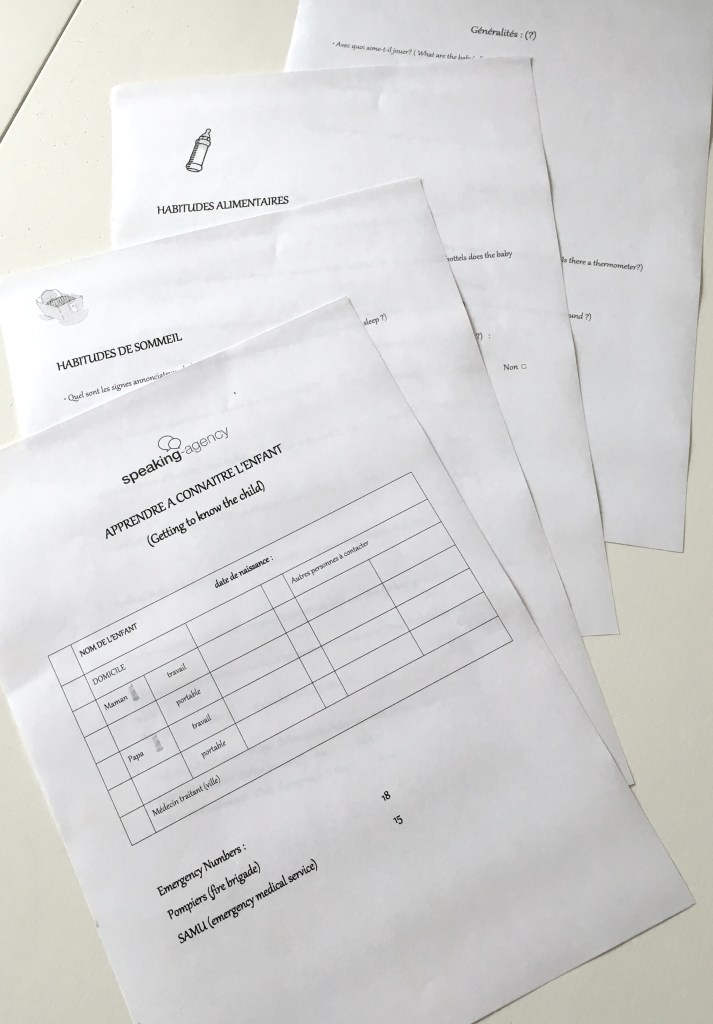 A son arrivée elle m’a remis un formulaire complet à remplir sur les habitudes des enfants.