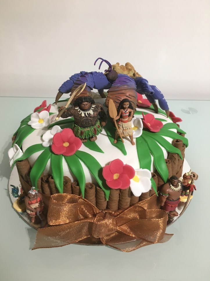 Cette année, j’ai eu le plaisir de préparer le gâteau d’anniversaire de la petite Charlotte sur le thème de Vaiana.