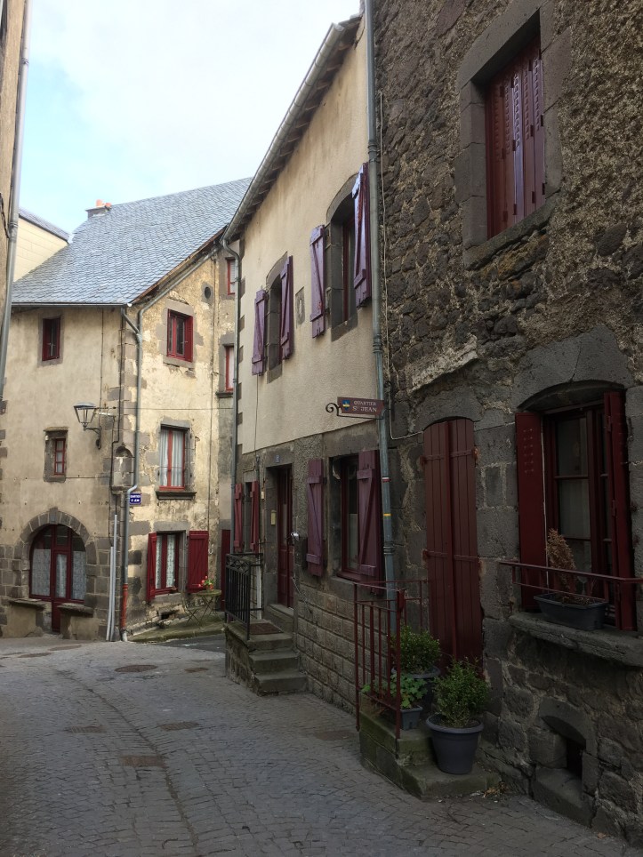 C’est sans doute le plus joli village du coin. Il a beaucoup de charme avec ses belles demeures du XIIe et XVIe en lave grise et aux volets rouges.