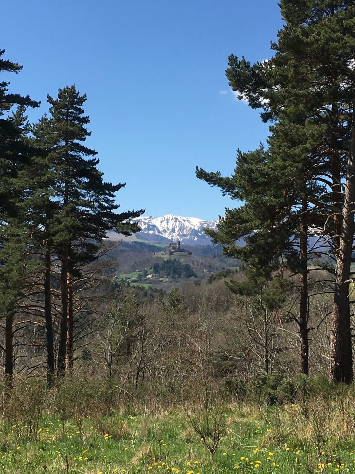 Nous avons pique-niqué dans un espace dégagé avec une vue magnifique sur le château de Murol et le Massif du Sancy.