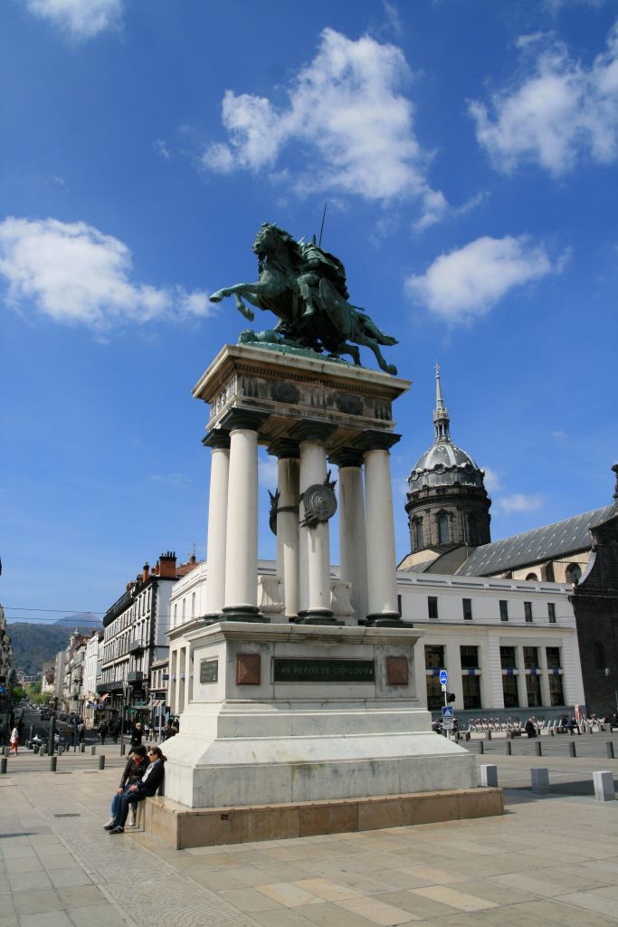 Cette statue monumentale est l’œuvre de Bartholdi (auteur de la statue de la Liberté et du Lion de Belfort). Ce bronze juché sur énorme socle représente le valeureux Vercingétorix, glaive au point sur son cheval cabré, en vainqueur des romains. A ses pieds, un soldat romain mort pour illustrer sa victoire face à César et ses troupes en 52 avant J.-C.