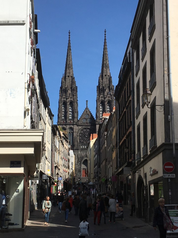 Pour cette troisième étape en Auvergne, nous avons profité d’une journée ensoleillée pour visiter  Clermont-Ferrand. Nous nous sommes baladés dans les rues de la ville car les principaux monuments sont situés au coeur de la cité auvergnate. Ils sont aussi géographiquement très proches les uns des autres, on peut facilement circuler à pied.