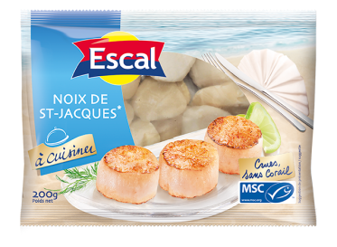J’ai utilisé les noix de Saint-Jacques surgelées et crues de la marque Escal. Ces noix de Saint-Jacques de gros calibre, sans corail, sont certifiées MSC. Elles sont disponibles en sachet de 200 grammes ce qui permet de préparer également un bon dîner pour papa et maman !