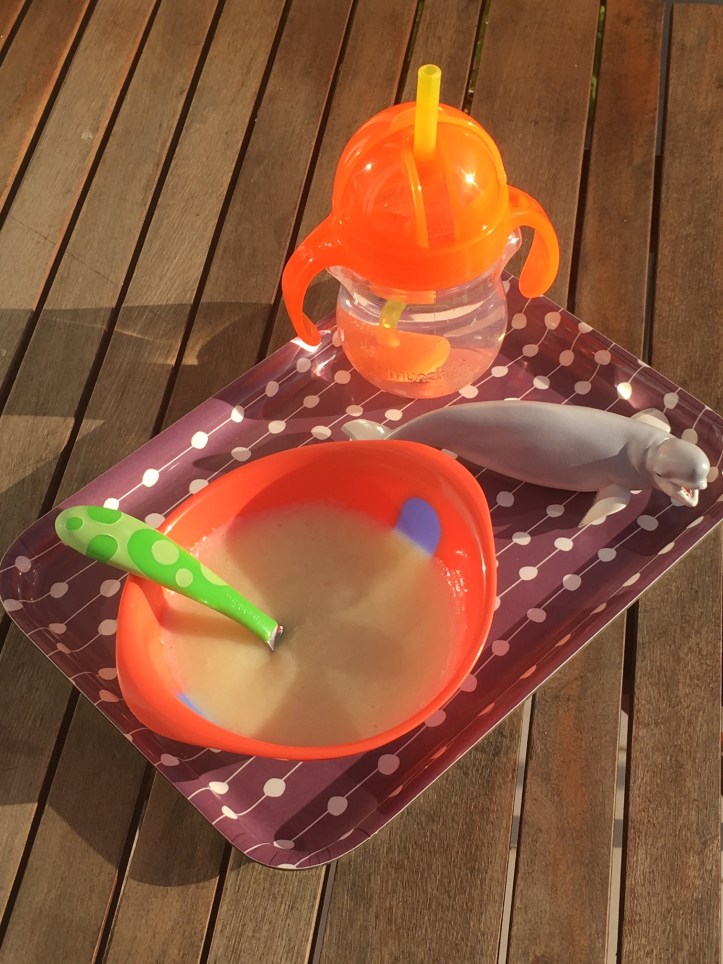 Pour deux portions d’environ 200 grammes pour un bébé de 12 mois.