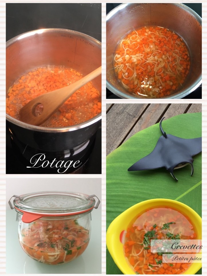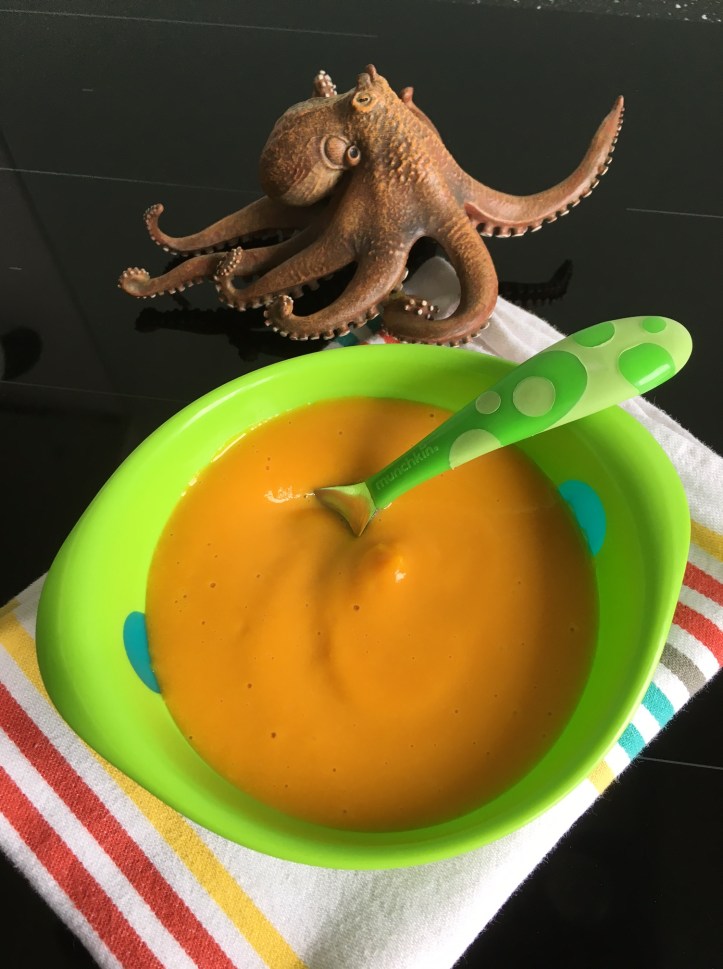 Pour un potage d’environ 250 grammes à destination d’un bébé de 18 mois.