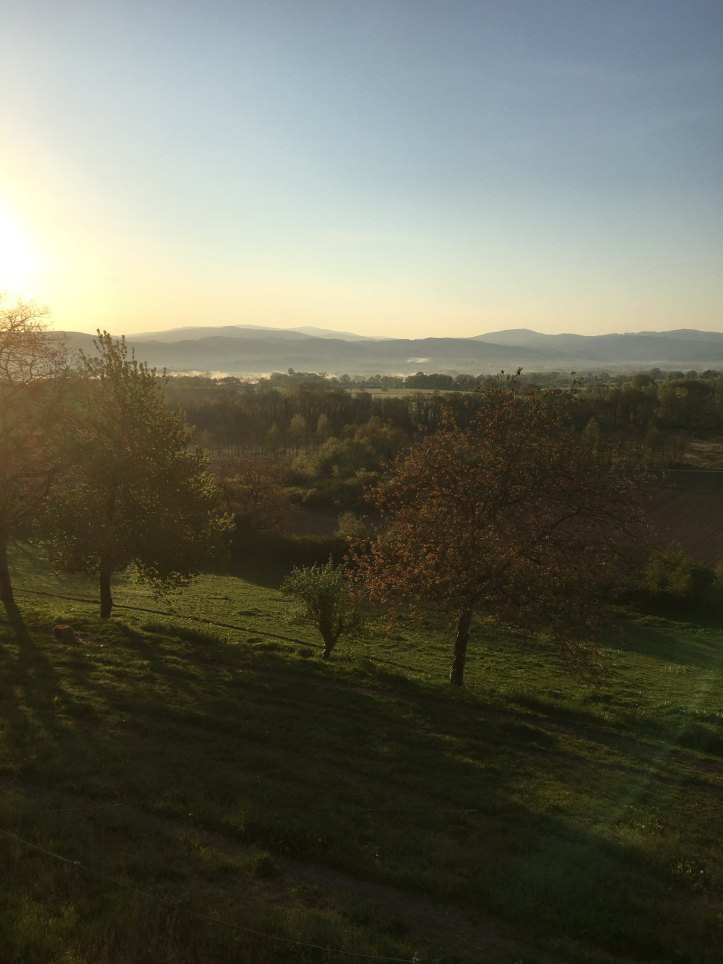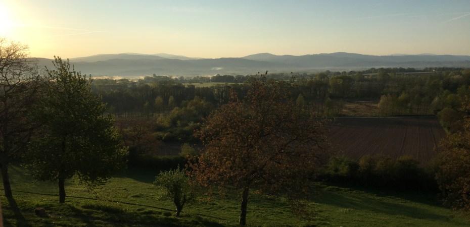 La petite ville de Chateldon est située au nord est de Clermont-Ferrand. Nous avons choisi cette destination car elle nous permettait de rendre visite à un ami qui a créé son activité de travaux agricoles avec les chevaux ici aux pieds des Monts du Forez.