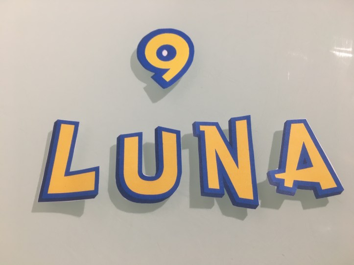 J’ai imprimé ces lettres en grand format avant de le découper et les utiliser comme modèles. J’ai également ajouté un 9 correspondant à l’âge de ma fille.