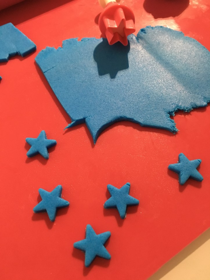 J’ai laissé séché les étoiles également pour qu’elles durcissent et soient plus faciles à coller ensuite sur le gâteau à l’aide de colle alimentaire.
