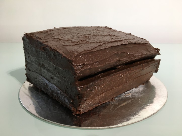 J’ai ensuite recouvert le gâteau de ganache au chocolat.