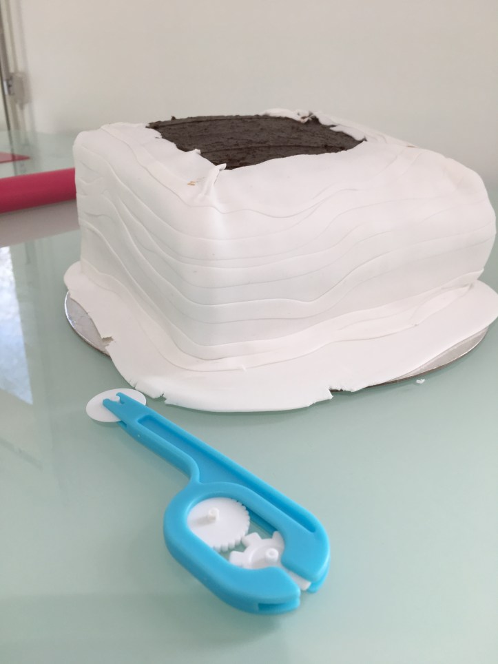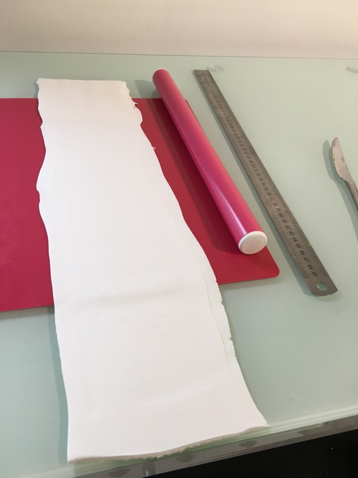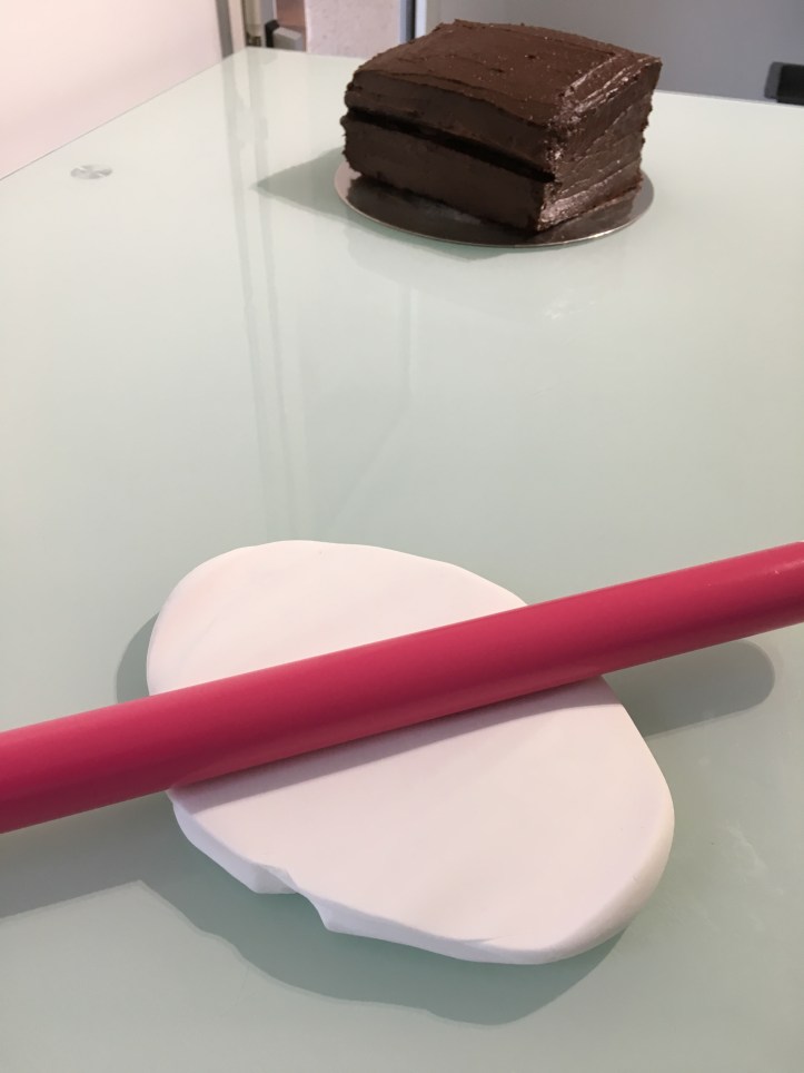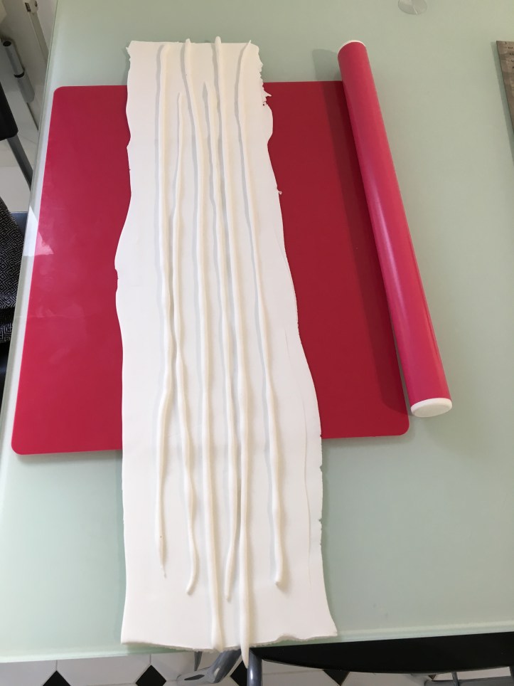 J’ai ensuite étalé les morceaux de pâte à sucre à l’aide d’un rouleau pour créer un effet de pages.