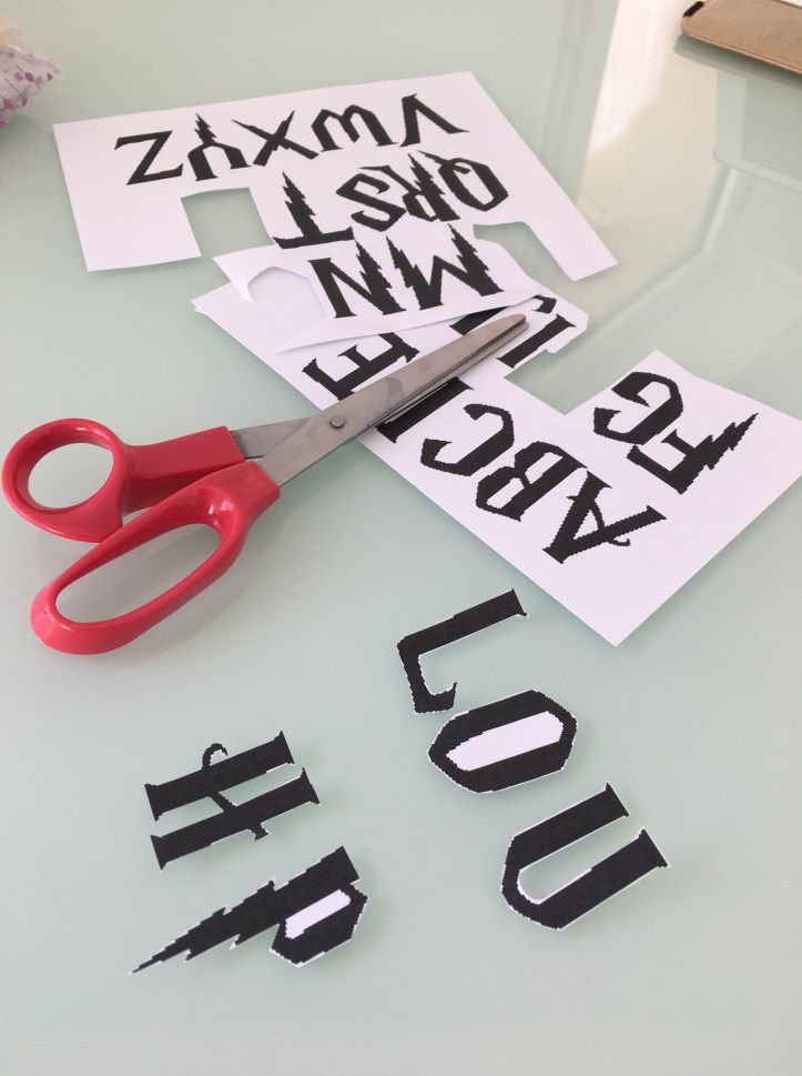 Pour ce gâteau j’ai imprimé un lettrage du thème Harry Potter afin de réaliser le prénom de LOU dans la même typographie que celle utilisée pour Harry Potter. Voici le modèle que j’ai choisi.