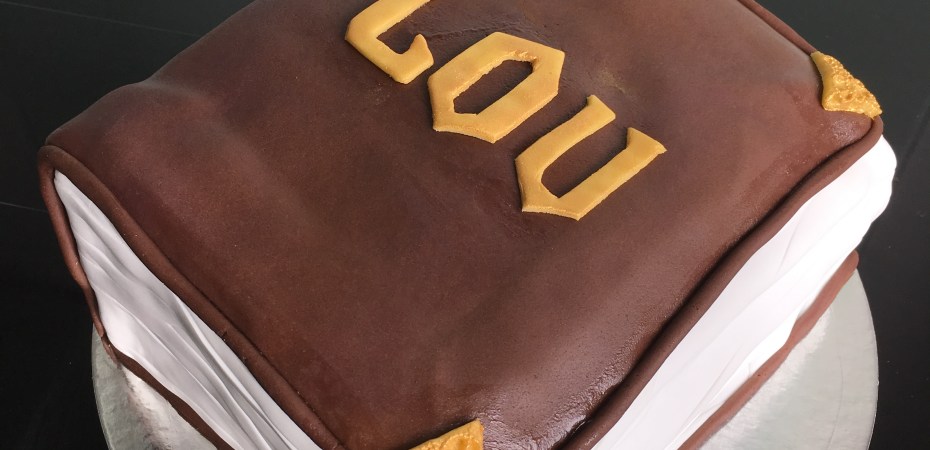 Étalée délicatement sur le grimoire, la pâte à sucre marron prend parfaitement la forme de la couverture d’un livre.