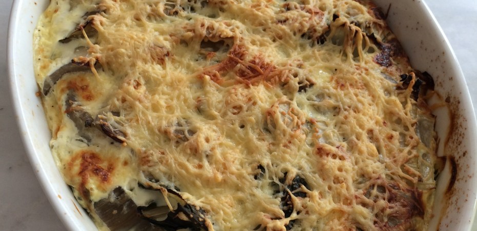 - Déposez les blettes dans le plat à gratin. Versez dessus la sauce béchamel et parsemez le reste du fromage ainsi que le reste du beurre en noisettes.