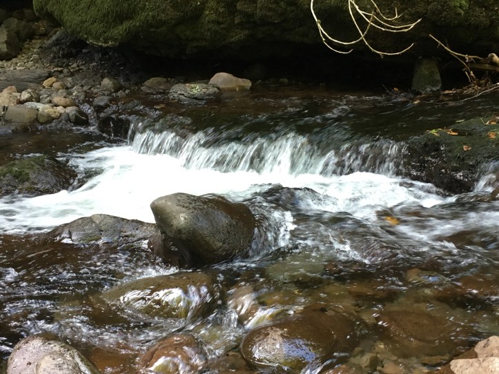 Ici, les blocs rocheux n’encadrent plus seulement les berges de la Jordanne mais parsèment son lit. C’est ici que l’ambiance est la plus particulière. On laisse facilement son imagination vagabonder jusqu’à percevoir des êtres fantastiques.