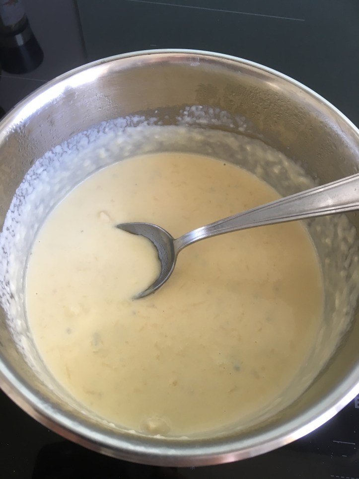 - Dans une casserole, versez la crème liquide et faites chauffer. Découpez les 3 fromages en petits morceaux et déposez les dans la crème chaude, ils vont fondre. Retirez du feu et laissez refroidir.