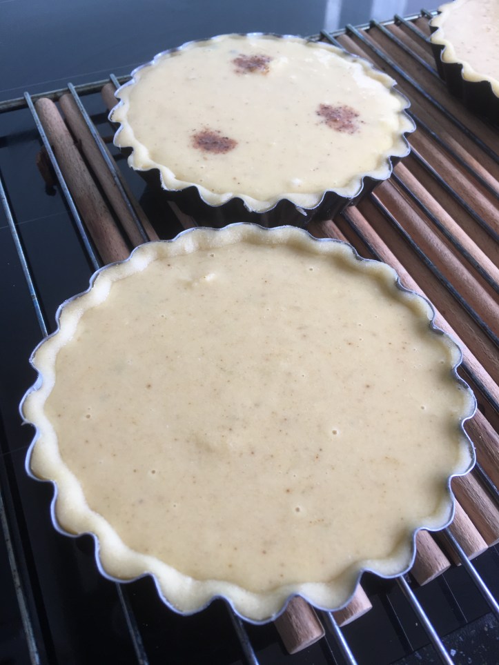 - Répartissez le mélange dans les moules à tarte.Mon petit plus : j’aime bien ajouter une déco réalisée avec la reste de pâte. J’utilise un de mes emporte-pièce pour réaliser cela rapidement. Pour ces tartelettes j’ai confectionné des fleurs. Ça m’amuse !