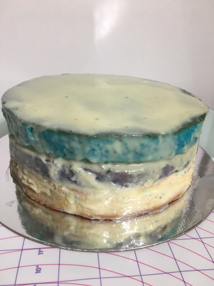 J’ai également préparé un glaçage à base beurre et de sucre glace afin de coller les différentes couches ensemble puis unifier leur aspect extérieur.