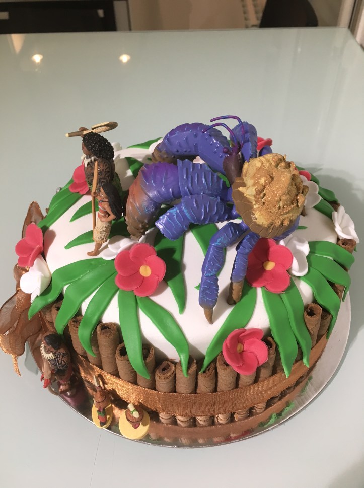 Aujourd’hui, je vous propose de découvrir le détail de la décoration en pâte à sucre du gâteau d’anniversaire sur le thème Vaiana.