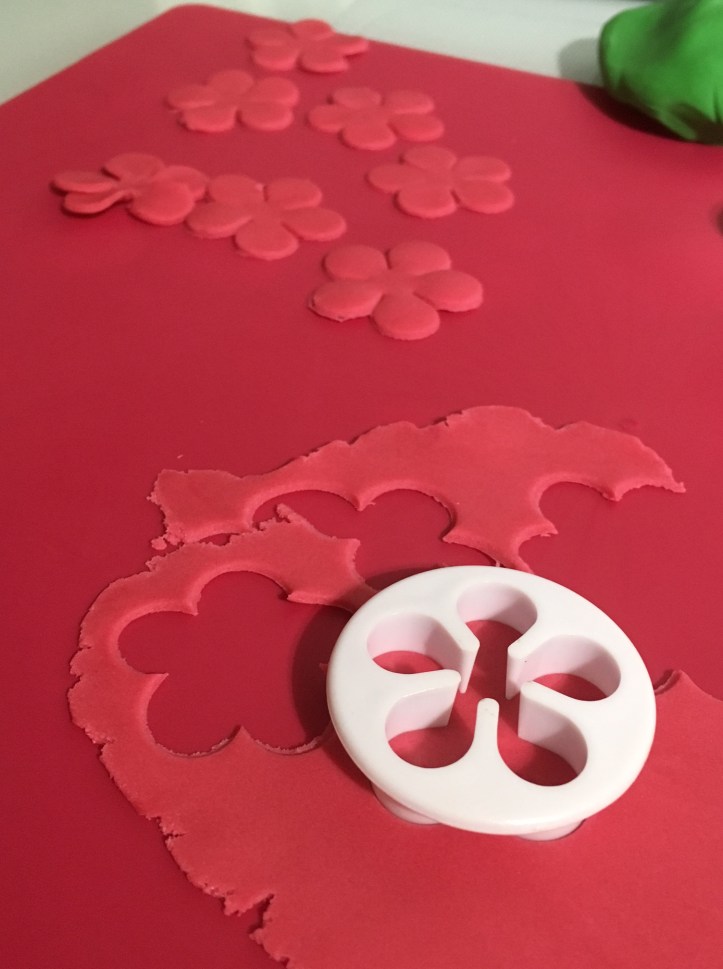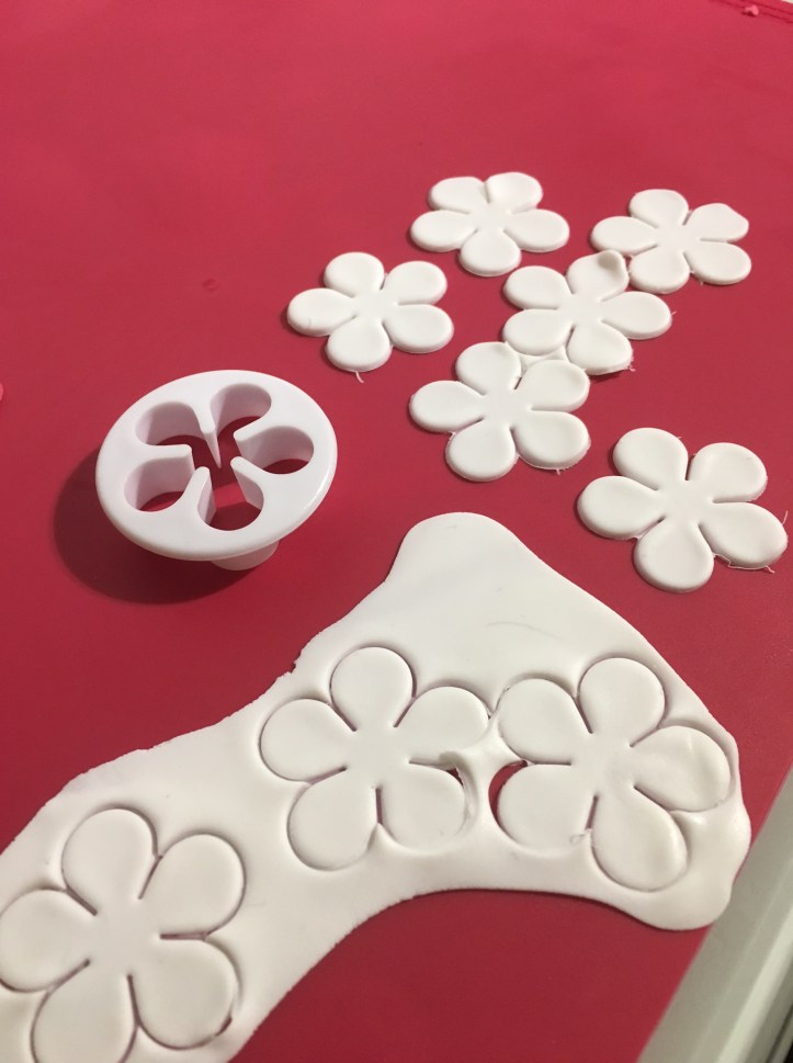 Pour créer des fleurs comme celles du frangipanier, j’ai utilisé un emporte-pièce connu pour préparer les pétales de rose.