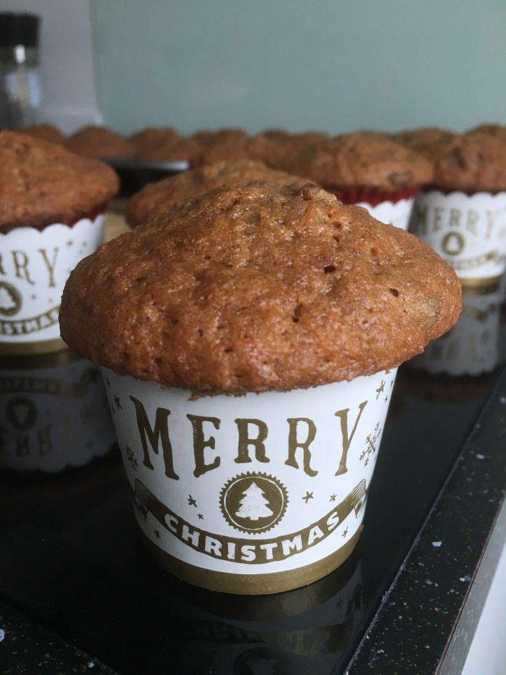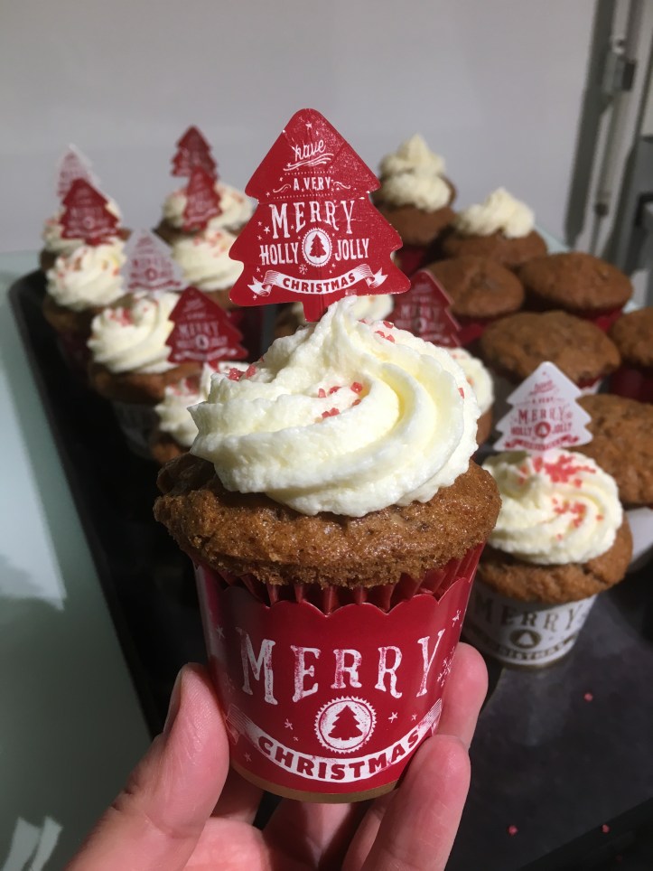 Pour le salon de thé anglais du marché de Noël tenu par l’association à laquelle j’appartiens, j’ai préparé des cupcakes à la carrot et aux épices.
