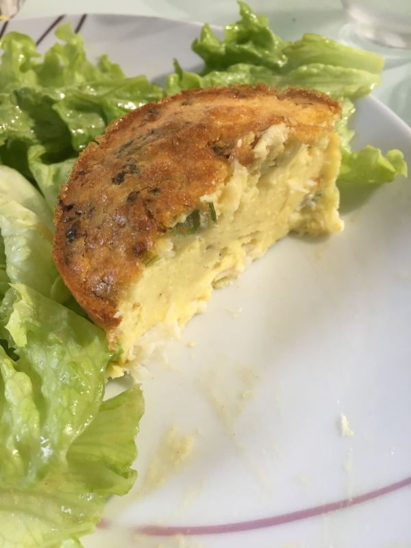 - Battez les oeufs et incorporez la Maïzena, puis ajoutez la crème fraîche, le crabe, l’oignon et l’ail étuvés.