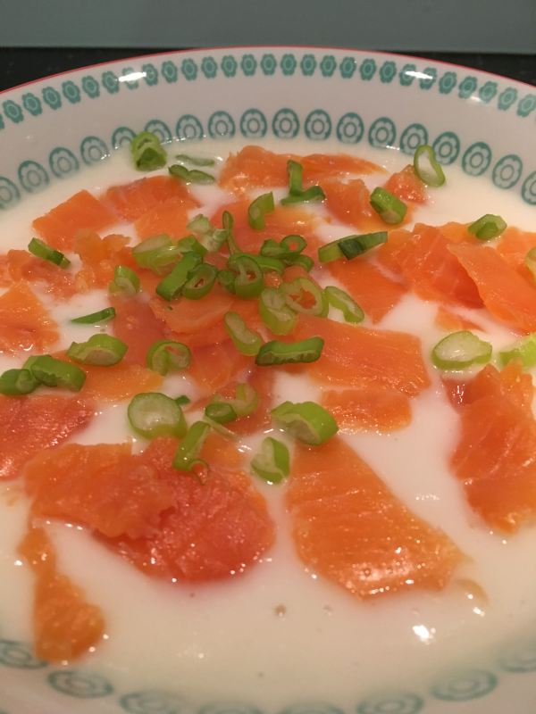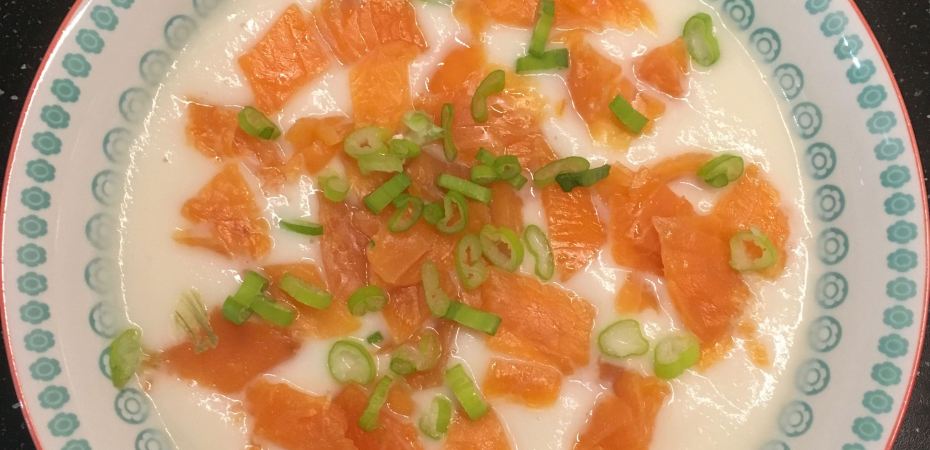 Cette semaine, j’ai préparé un velouté de choux-fleur accompagné de lamelles de saumon fumé. Un vrai succès !