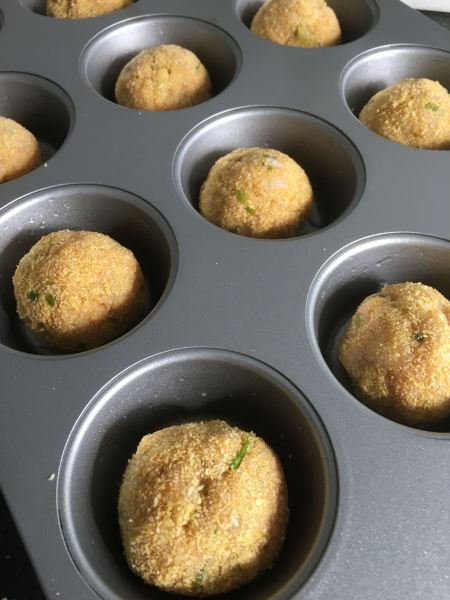 - Sur une plaque recouverte d’une feuille de papier cuisson, déposez vos boulettes que vous aurez préalablement huilée au pinceau.
