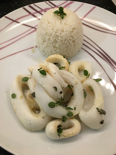 - Ajoutez les calamars. Mélangez bien et laissez cuir jusqu’à ce que les anneaux soient légèrement doré.
