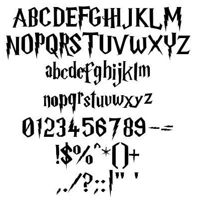 Le lettrage du thème Harry Potter peut facilement être imprimé un peu à l’avance pour préparer le prénom de l’enfant. Voici le modèle utilisé.