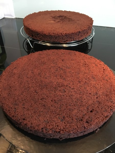 Il est important que les gâteaux soient complètement froids pour être décorés. Pour la base, j’ai préparé des gâteaux au chocolat, à partir d’une recette extrémement simple.