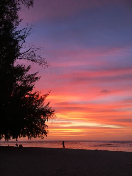 Sur la plage de Flic en Flac on peut aussi profiter de sublimes coucher de soleil pratiquement tout les soirs. Quand le ciel est nuageux, les dégradés de couleurs sont encore plus intenses.