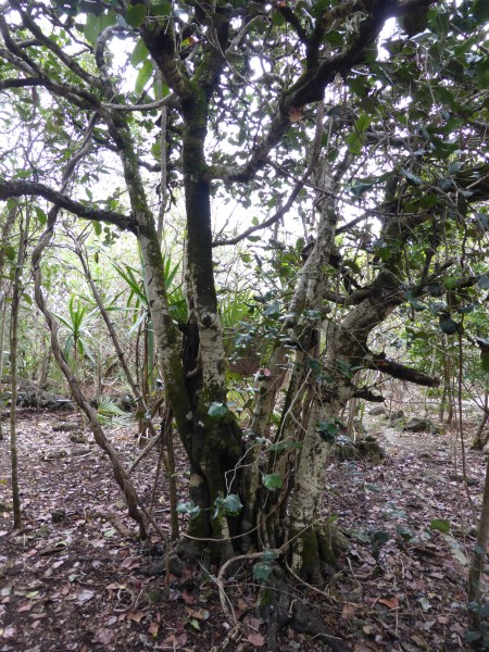 On étudie également les plantes hétérophiles. C’est à dire que les feuilles des jeunes pousses sont différentes des feuilles adultes. Elles présentes des nervures rouges et sont plus longues ce qui les rende moins attractives pour les herbivores comme les tortues géantes. Cette adaptation leurs permet de grandir malgré la présence des tortues sur l’île.