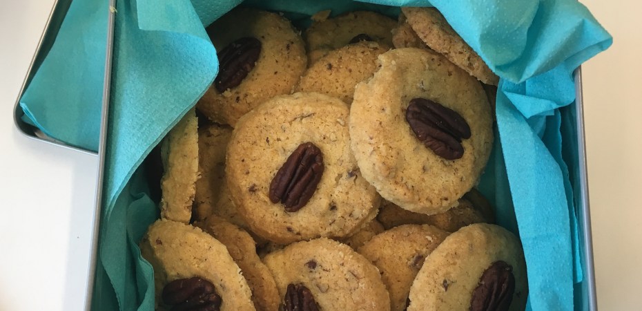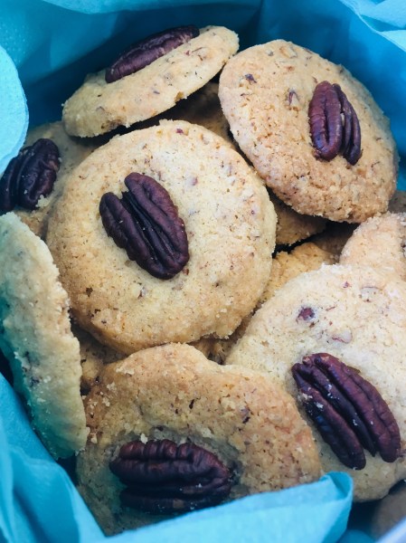 Cette semaine, je vous propose une recette de biscuits aux noix de pécan que nous avons réalisé à la maison pour en offrir à la maîtresse de ma puce. En doublant toutes les quantités j’ai pu en préparer un grand nombre afin d’en apporter à mes collègues. Ce sont des biscuits qui se conservent très bien si ils sont enfermés dans une boite en métal.