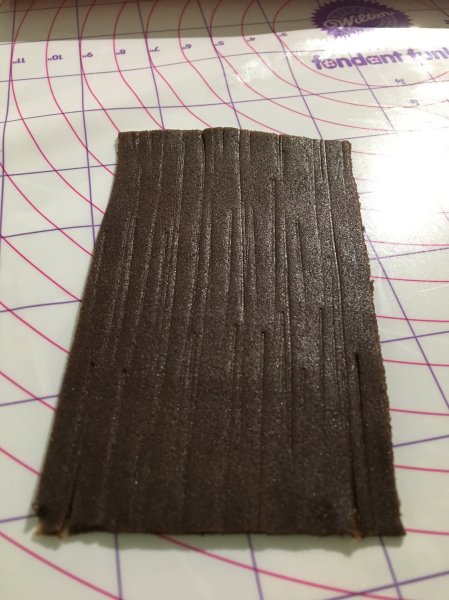 J’ai ensuite travaillé la feuille de pâte pour lui donner cet aspect de planche de bois.