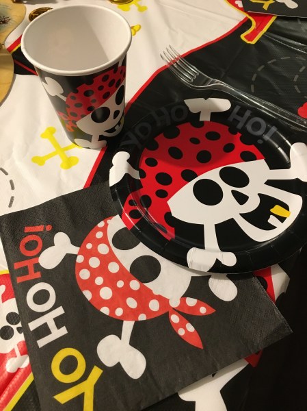 Pour compléter la mise en scéne de ce gâteau, nous avions acheté un set de vaisselle sur le thème Pirates.