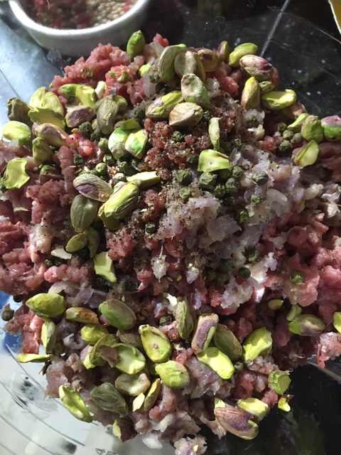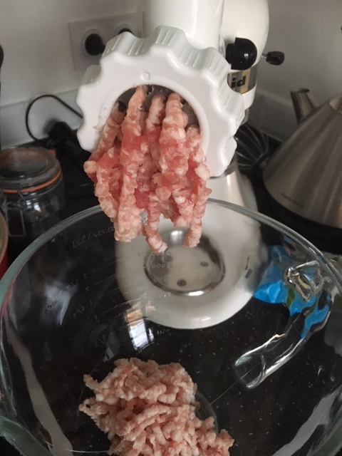 4. Passez le tout à la moulinette ou au hachoir en alternant viande, échalote et ail. Mélangez le tout.