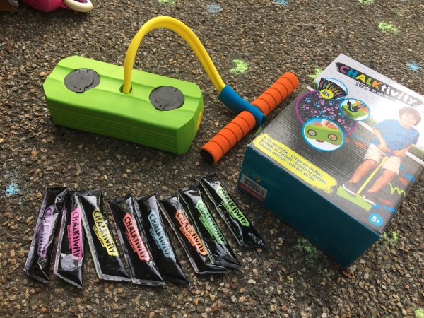 Le premier accessoire Chalktivity – Pogo Prints permet de créer des empreintes en sautant à pieds joints.