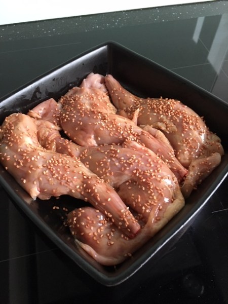 - Déposez les gigolettes dans un plat à gratin et badigeonnez les 2 faces de sauce soja.