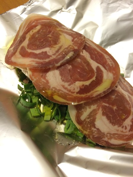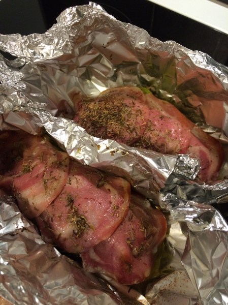 J’aime beaucoup cette recette car elle est simple et rapide à exécuter surtout les soirs en rentrant du boulot. La papillote permet de lancer la cuisson et de faire autre chose sans avoir à se soucier de vérifier la cuisson à mi parcours. Le lard n’est pas joliment doré mais il reste tendre ce qui permet aux enfants de la manger dans sa totalité.