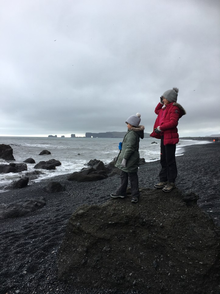 Nous avons passé pas mal de temps sur cette plage pour observer les différentes formations géologiques : les formations basaltique, la lave, et les microparticules composant le sable.