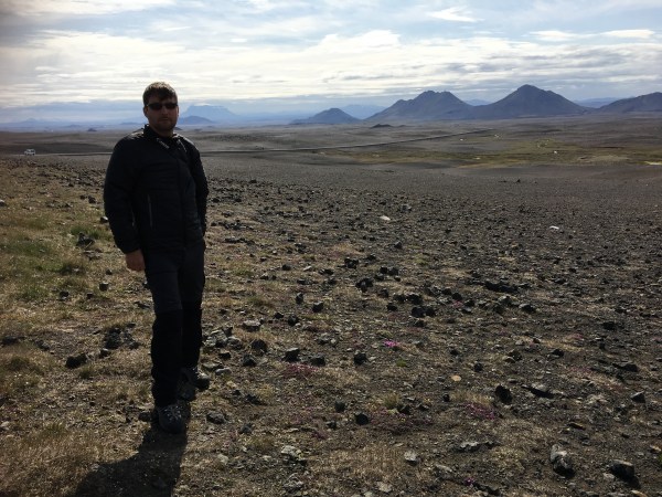 Il a choisi un lieu un peu particulier que nous avons découvert par hasard sur la route entre Egilsstaðir et Akureyri. C’est une zone aux ambiances lunaires qui a servit de décors à des films hollywoodiens comme Oblivion avec Tom Cruise. Pour en savoir plus sur les différents lieux de tournages en Islande, je vous conseille de lire cet article du site Guide to Iceland.