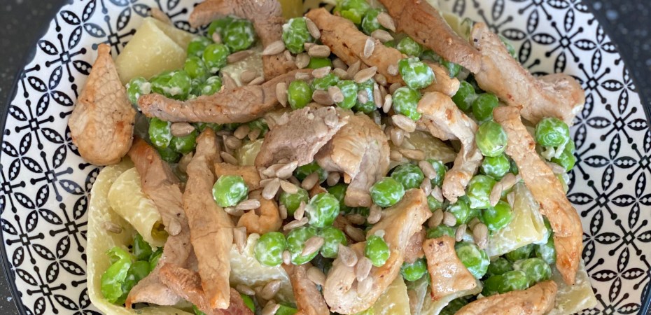 - Servez dans une assiette creuse, le mélange de pâtes et les morceaux de veau puis parsemez de graines de tournesol.