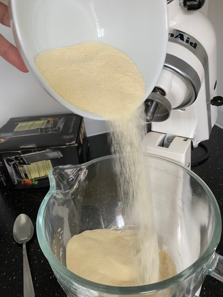 L’avantage de la semoule c’est qu’elle assure une meilleure tenue des pâtes à la cuisson que la farine simple car elle absorbe l’eau plus lentement.