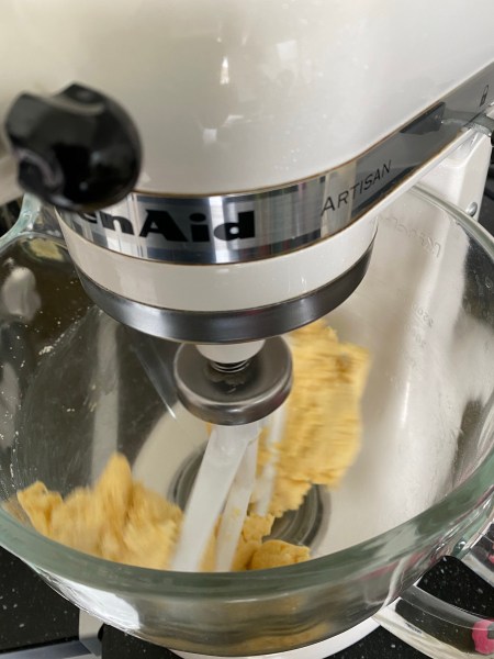 - Après pétrissage et absorption des ingrédients, la pâte doit être souple et non collante. Si la pâte paraît friable, ajouter de l’eau très progressivement. Si au contraire elle paraît trop humide, ajouter un peu de farine.